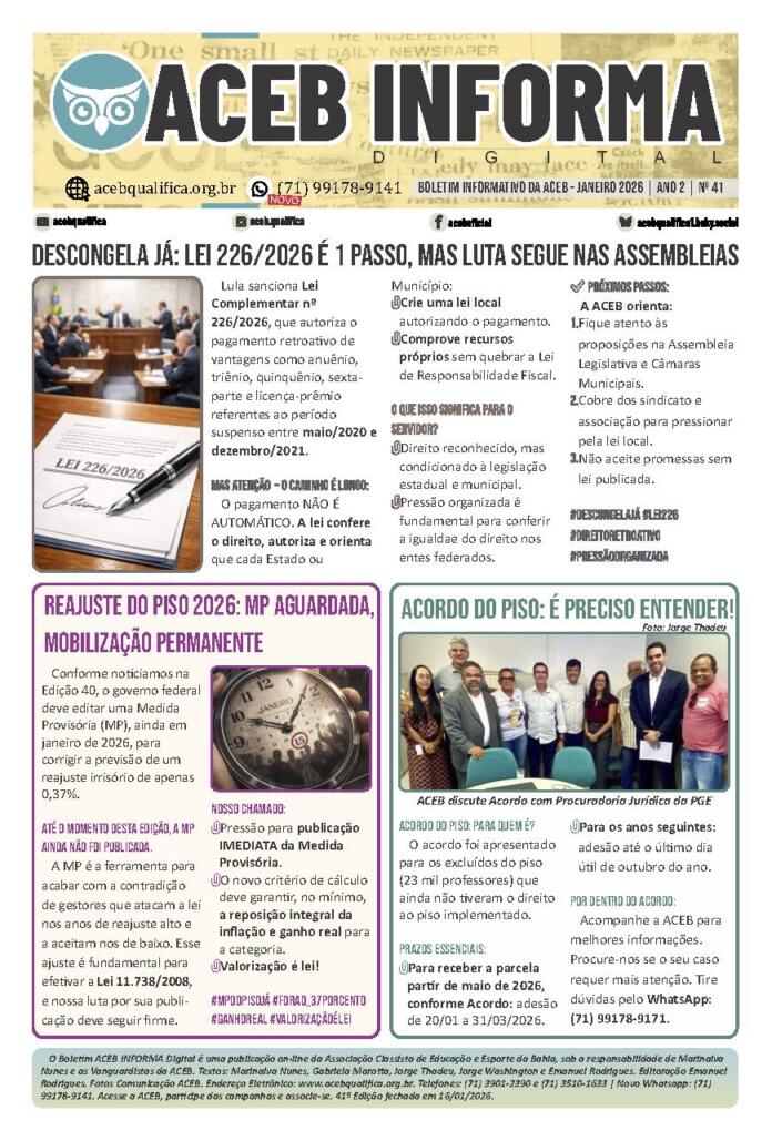 A Edição 41 do Boletim ACEB Informa Digital chega para orientar a categoria sobre as lutas decisivas que marcam o início de 2026.