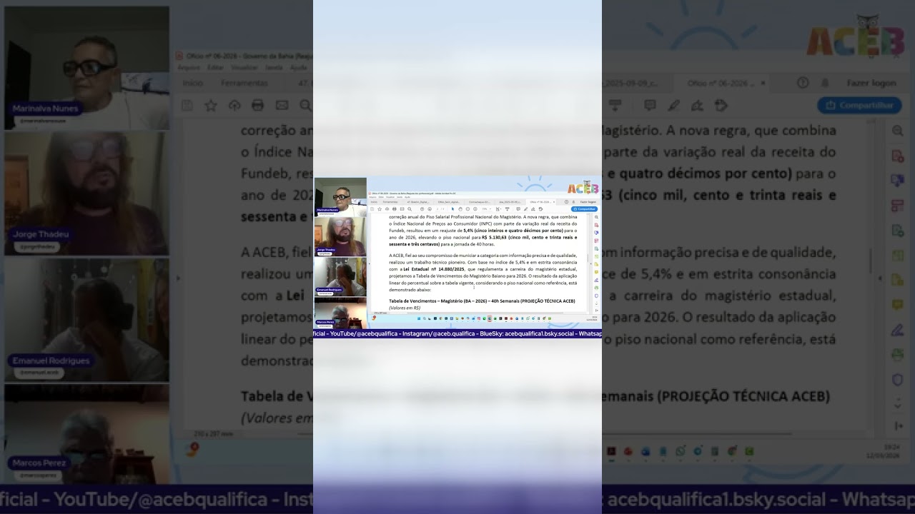 @acebqualifica ACEB cobra aplicação do reajuste de 5,4% na tabela salarial vigente na rede estadual
