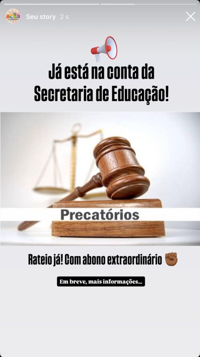 Em primeira mão, a ACEB vem informar a todos e a todas que o valor dos precatórios JÁ ESTÁ NA CONTA da Secretaria de Educação do Estado da Bahia!