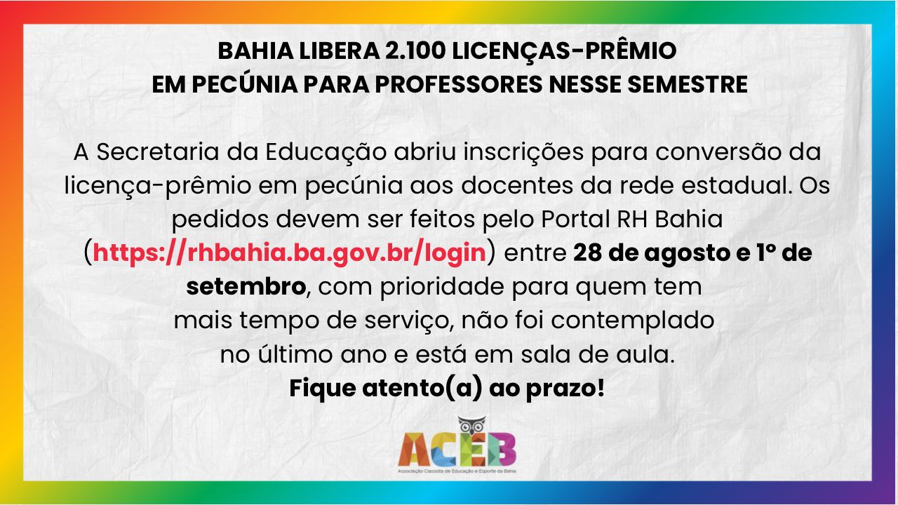 A Secretaria da Educação da Bahia publicou a Portaria nº 1274/2025, autorizando a conversão da licença-prêmio em pecúnia para professores da rede estadual. Neste segundo semestre, serão liberadas até 2.100 concessões.